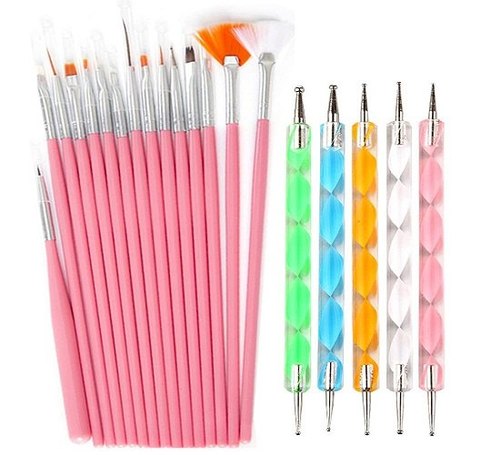 20pcs Nail Art Dotting Tools Set,Nail Art Brushes Pink NADBKP